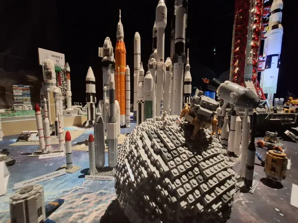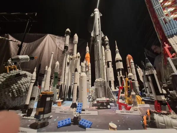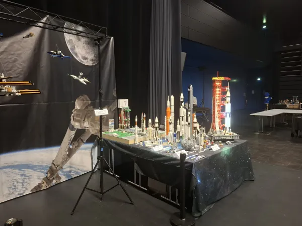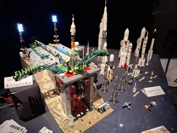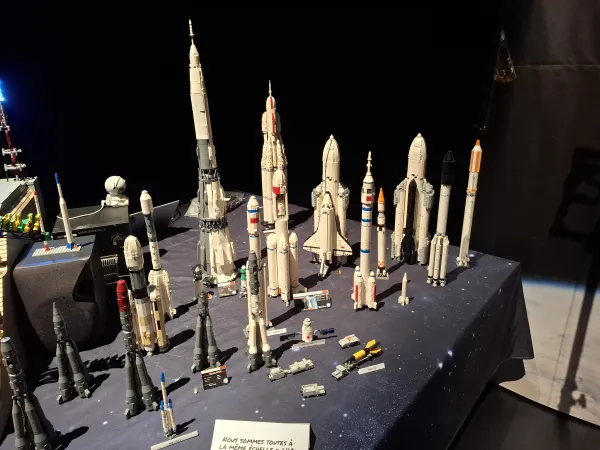 J'ai eu le privilège d'y exposer ma collection personnelle sur un espace de 10 mètres, regroupant l'ensemble de mes fusées LEGO, ainsi qu'une pièce phare : mon sous-marin nucléaire Le Triomphant. Chaque modèle, construit brique par brique avec patience et passion, retrace les grandes étapes de l'histoire spatiale et militaire, mêlant technicité et souci du détail.