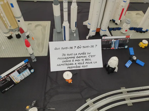 Parmi les attractions phares de l'exposition, le stand Lego Rocket Collection a particulièrement retenu l'attention des visiteurs. Ce stand a présenté une impressionnante gamme de répliques de fusées et de vaisseaux spatiaux emblématiques, allant de la célèbre fusée Ariane à la légendaire Saturn V. Chaque modèle, construit avec soin, mettait en avant le talent des constructeurs et l'attention portée aux détails, rappelant les prouesses de l'ingénierie aérospatiale.